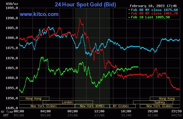 Vào lúc 5 giờ 45 phút sáng hôm nay 11/2 (giờ Việt Nam), giá vàng giao ngay thế giới niêm yết trên Kitco neo ở mức 1.865,50 USD/ounce, quy đổi tương đương 53,597 triệu đồng/lượng.