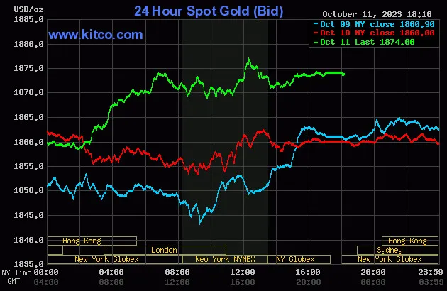 Các nhà đầu tư cũng theo dõi những diễn biến trong cuộc xung đột giữa Israel và nhóm Hồi giáo Palestine Hamas. Vào thứ Hai 9/10, giá vàng đã tăng 1,6% khi những căng thẳng địa chính trị này làm tăng nhu cầu trú ẩn an toàn.