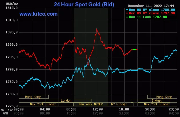 Vào lúc 5 giờ 45 phút sáng hôm nay 12/12 (giờ Việt Nam), giá vàng giao ngay thế giới niêm yết trên Kitco neo ở mức 1.797,90 USD/ounce, quy đổi tương đương 51,073 triệu đồng/lượng.