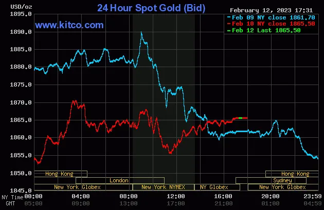 Biểu đồ giá vàng thế giới lúc 5:30 hôm nay 13/2 (giờ Việt Nam) - Nguồn Kitco