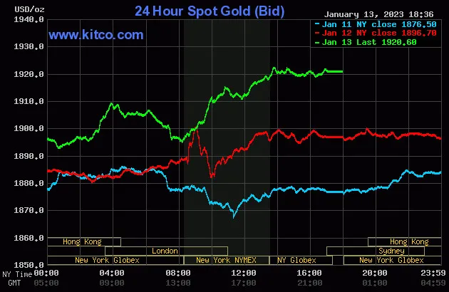 Giá vàng giao ngay thế giới kết thúc tuần niêm yết trên Kitco neo ở mức 1.920,60 USD/ounce, quy đổi tương đương 54,847 triệu đồng/lượng.