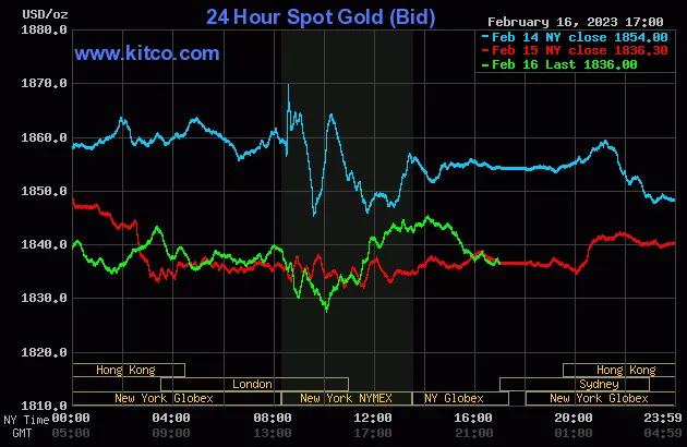 Vào lúc 5 giờ 00 phút sáng hôm nay 17/2 (giờ Việt Nam), giá vàng giao ngay thế giới niêm yết trên Kitco neo ở mức 1.836 USD/ounce, quy đổi tương đương 52,828 triệu đồng/lượng.