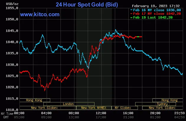 Vào lúc 5 giờ 30 phút sáng hôm nay 20/2 (giờ Việt Nam), giá vàng giao ngay thế giới niêm yết trên Kitco neo ở mức 1.842,20 USD/ounce, quy đổi tương đương 53,450 triệu đồng/lượng.