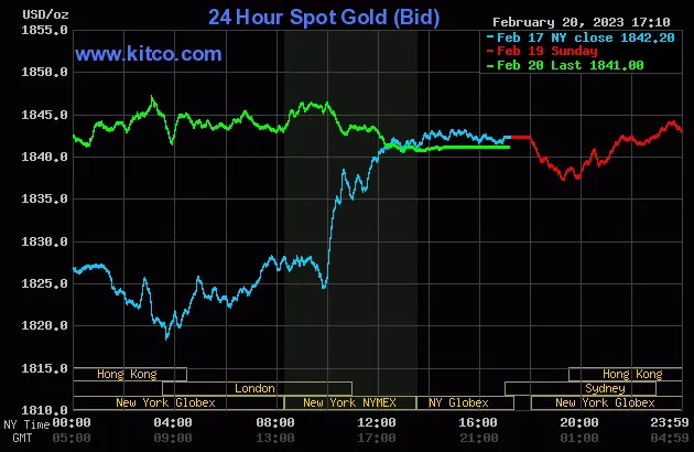Vào lúc 5 giờ 10 phút sáng hôm nay 21/2 (giờ Việt Nam), giá vàng giao ngay thế giới niêm yết trên Kitco neo ở mức 1.841 USD/ounce, quy đổi tương đương 53,415 triệu đồng/lượng. Giá vàng kỳ hạn của Mỹ tăng 0,3% lên 1.855,1 USD.