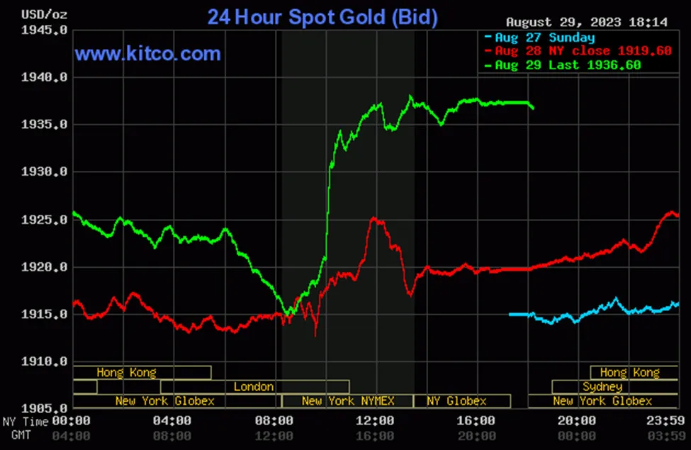 Biểu đồ giá vàng thế giới lúc 5:15 hôm nay 30/8 (giờ Việt Nam) - Nguồn Kitco