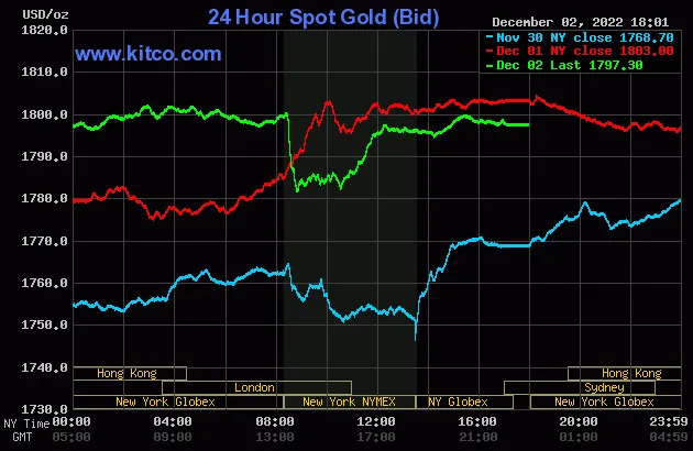 Giá vàng thế giới đóng cửa phiên giao dịch tuần được niêm yết trên Kitco ở ngưỡng 1.797,30 USD/ounce, quy đổi tương đương 53,123 triệu đồng/lượng.