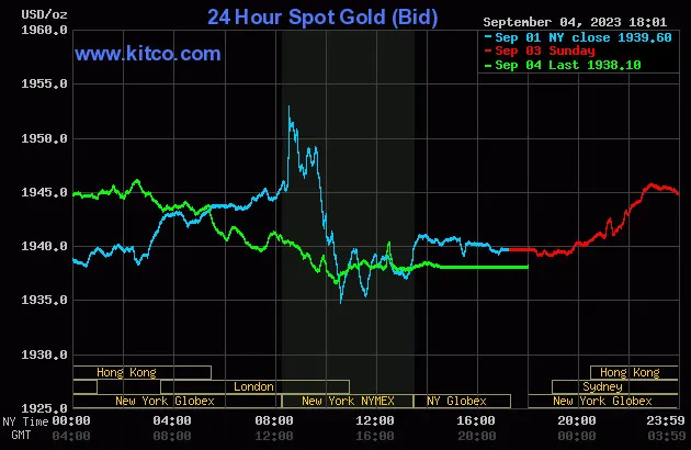 Vào lúc 5 giờ 00 phút sáng hôm nay 5/9 (giờ Việt Nam), giá vàng giao ngay thế giới niêm yết trên Kitco neo ở mức 1.938,10 USD/ounce, quy đổi tương đương 57,236 triệu đồng/lượng.