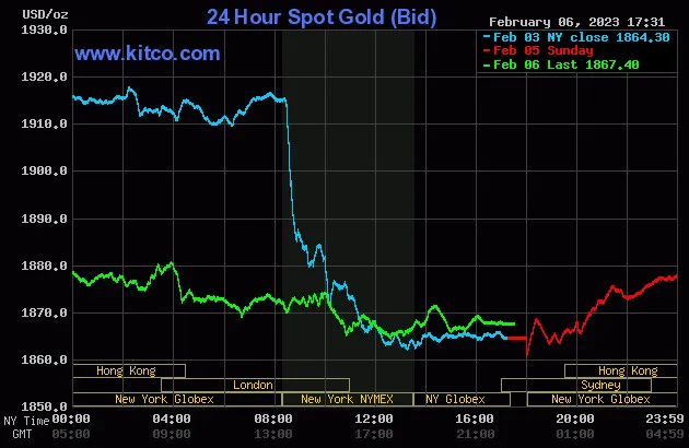 Vào lúc 5 giờ 30 phút sáng hôm nay 7/2 (giờ Việt Nam), giá vàng giao ngay thế giới niêm yết trên Kitco neo ở mức 1.867,40 USD/ounce, quy đổi tương đương 53,311 triệu đồng/lượng.