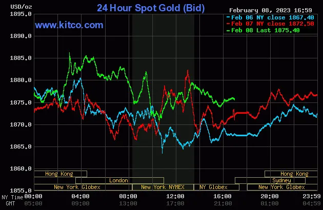 Vào lúc 5 giờ 00 phút sáng hôm nay 9/2 (giờ Việt Nam), giá vàng giao ngay thế giới niêm yết trên Kitco neo ở mức 1.875,40 USD/ounce, quy đổi tương đương 53,858 triệu đồng/lượng.