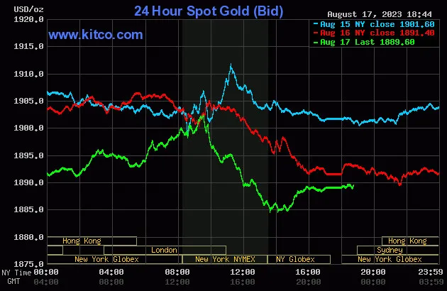 Vào lúc 5 giờ 45 phút sáng hôm nay 18/8 (giờ Việt Nam), giá vàng giao ngay thế giới niêm yết trên Kitco neo ở mức 1.889,60USD/ounce, quy đổi tương đương 55,344 triệu đồng/lượng.