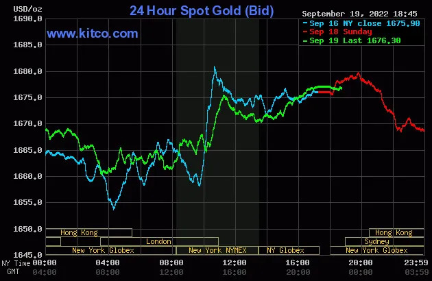 Vào lúc 5 giờ 45 phút sáng hôm nay 20/9 (giờ Việt Nam), giá vàng giao ngay thế giới niêm yết trên Kitco giảm 1,4 USD so với cùng giờ vào sáng hôm qua, neo ở mức 1.676,3 USD/ounce, quy đổi tương đương 47,804 triệu đồng/lượng.