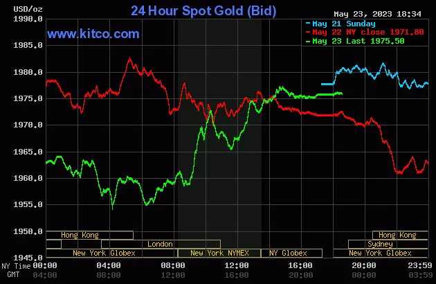 Vào lúc 5 giờ 35 phút sáng hôm nay 24/5 (giờ Việt Nam), giá vàng giao ngay thế giới niêm yết trên Kitco neo ở mức 1.975,50 USD/ounce, quy đổi tương đương 56,872 triệu đồng/lượng. Lần cuối cùng, giá vàng tháng 6 giảm 17,50 USD xuống 1.959,70 USD/ounce và giá bạc tháng 7 giảm 0,576 USD xuống 23,28 USD/ounce.