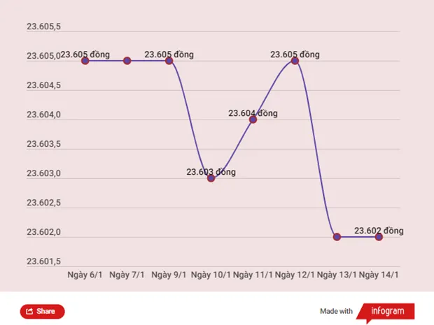 Trên thị trường ngoại tệ, theo công bố của Ngân hàng Nhà nước, tỷ giá trung tâm áp dụng ngày hôm nay là 23.603 VND/USD, cộng 2 đồng so với chốt phiên trước.