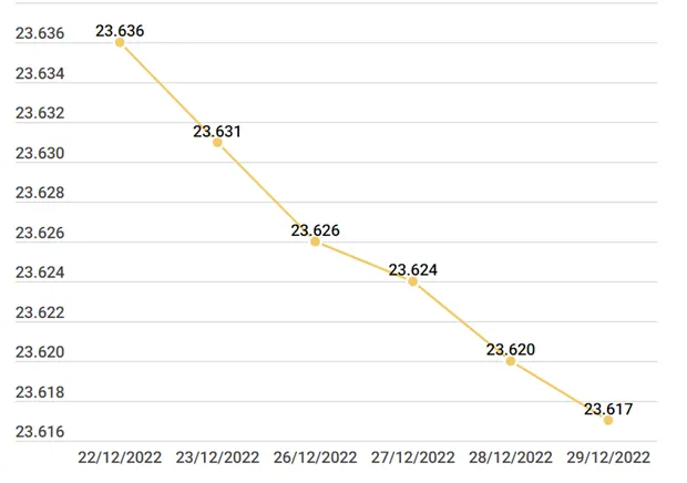 Theo công bố của Ngân hàng Nhà nước, tỷ giá trung tâm áp dụng ngày hôm nay là 23.617 VND/USD, giảm thêm 3 đồng.