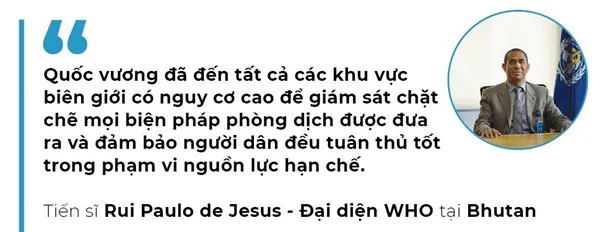 Trong nỗ lực bảo vệ đất nước khỏi COVID-19, người ta thường thấy hình ảnh vị vua Jigme Khesar Namgyel Wangchuck đi bộ, đi ô tô và cả đi ngựa đến những ngôi làng hẻo lánh để giám sát các biện pháp bảo vệ vương quốc nhỏ bé 700.000 người của mình khỏi đợt dịch bùng phát ở nước láng giềng Ấn Độ.