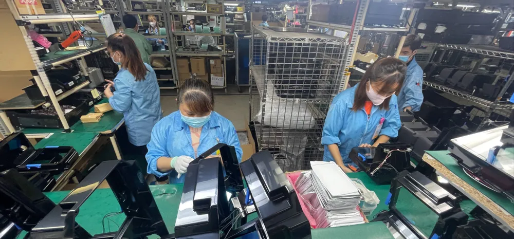 Công nhân Công ty Datalogic sản xuất thiết bị điện tử xuất khẩu tại Khu Công nghệ cao TPHCM. Ảnh: HOÀNG HÙNG