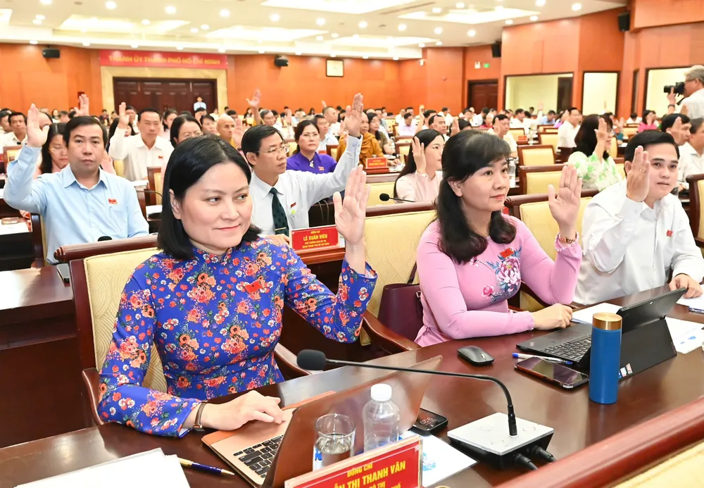 Đại biểu HĐND TPHCM biểu quyết thông qua dự thảo nghị quyết. Ảnh: VIỆT DŨNG