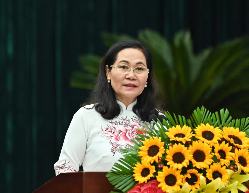 Phát biểu bế mạc kỳ họp, Chủ tịch HĐND TPHCM Nguyễn Thị Lệ thông tin, đây là cơ sở để UBND TPHCM chỉ đạo tổ chức, triển khai nhằm hoàn thành thắng lợi các mục tiêu, nhiệm vụ nghị quyết về phát triển kinh tế - xã hội, đảm bảo quốc phòng - an ninh năm 2024.