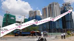 Lãi suất cho vay BĐS không nằm trong diện 17-19%/năm như định hướng của Nhà nước. Hiện tại nó dao động xung quanh 22-27%/năm tùy người vay và dự án. “Ngay cả khi lãi suất dành cho BĐS giảm về 18%/năm, các doanh nghiệp mới chỉ cầm hơi” - ông Đoàn Nguyên Đức, Chủ tịch HĐQT Công ty Hoàng Anh Gia Lai (HAG), nhận xét.