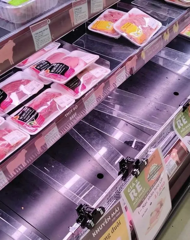 Nhiều quầy hàng thực phẩm ở siêu thị ở Hà Nội sáng 6-9 nhanh chóng hết hàng