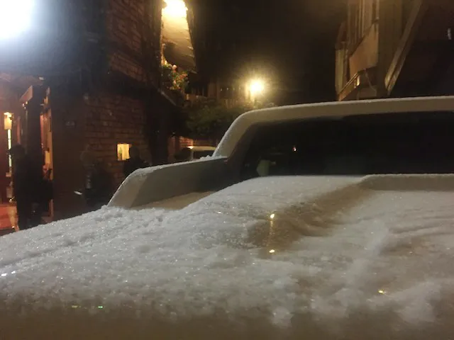 Khoảng 10 giờ sáng nay, tại một số nơi ở huyện Mộc Châu cũng bắt đầu xuất hiện mưa bông tuyết nhẹ.
