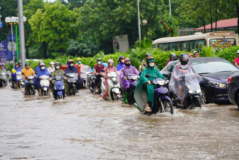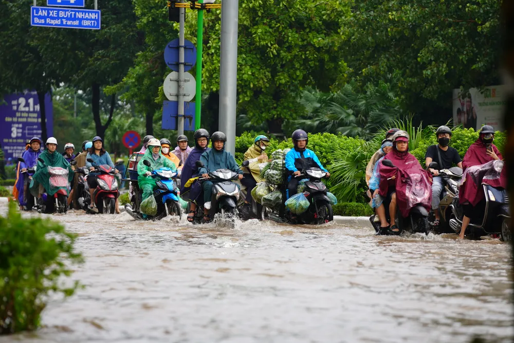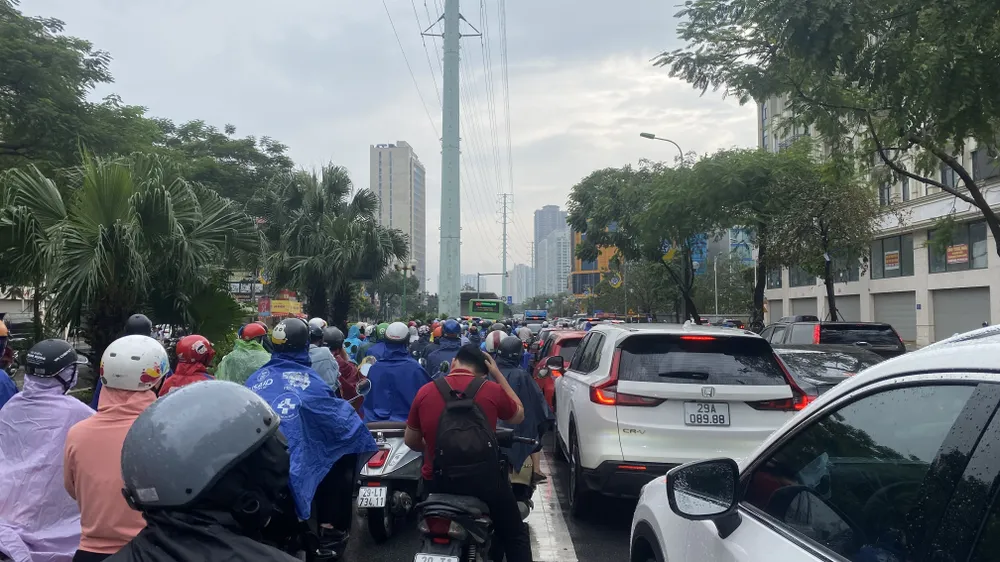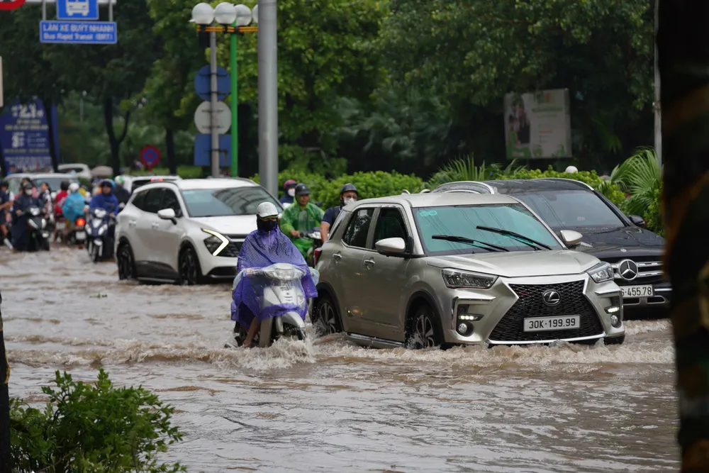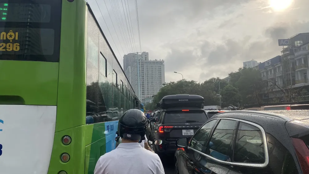 Trên đường Tố Hữu, một số đoạn bị ngập sâu, dẫn đến xe cộ các loại tắc cứng cả đoạn dài 5-7km từ ngã tư Vạn Phúc đến ngã tư Lương Thế Vinh. Tiếp tục đến hầm chui Khuất Duy Tiến (Vành đai 3 qua quận Thanh Xuân), xe cộ tiếp tục “xếp hình” kéo dài đến ngã tư Nguyễn Tuân - Lê Văn Lương.