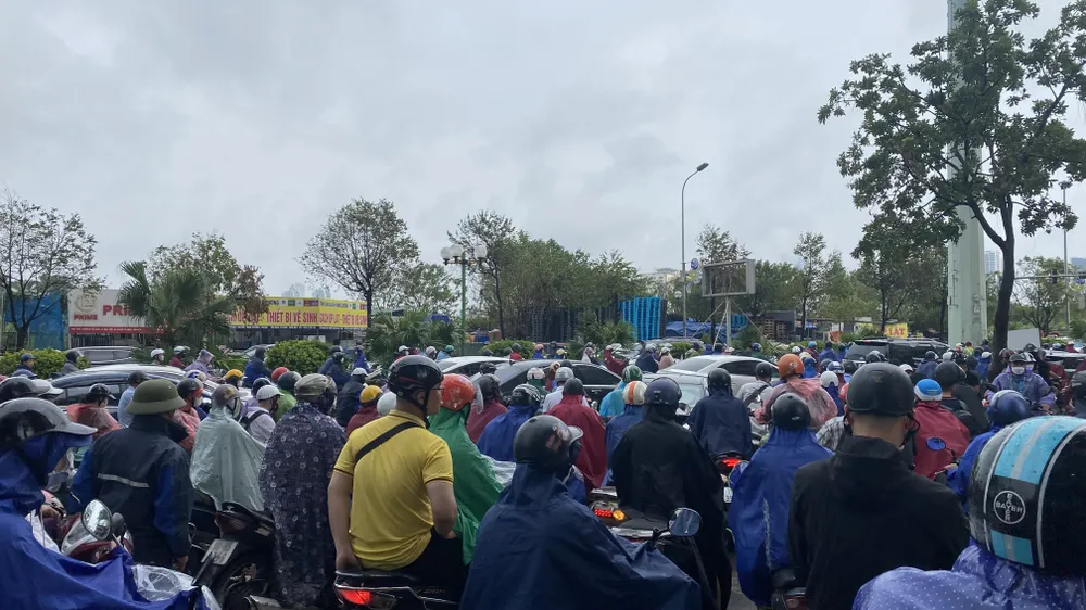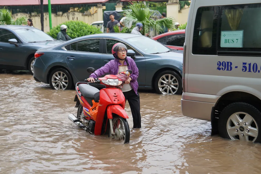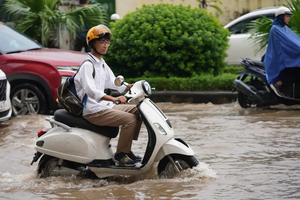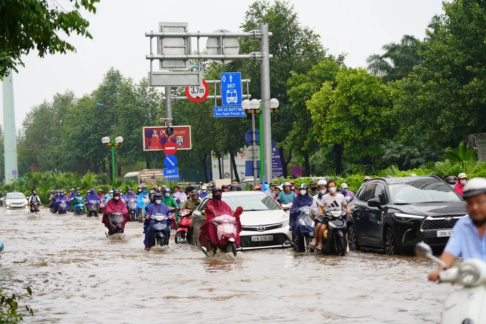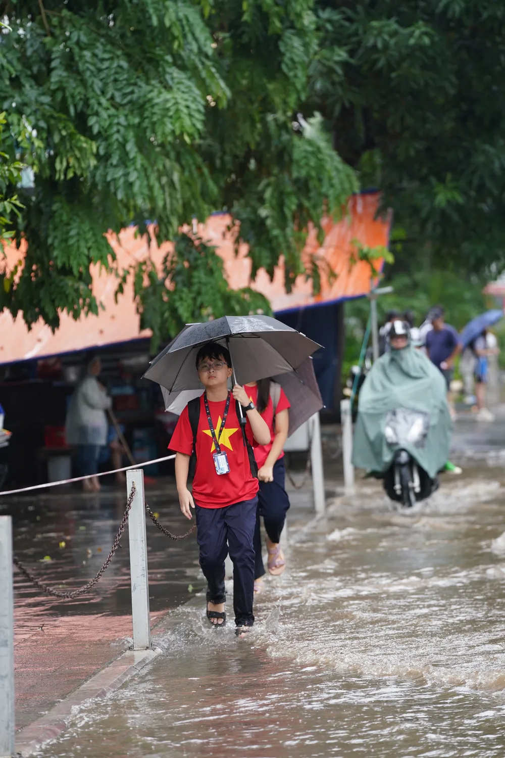 Theo quan sát, nhiều phương tiện nước ngập quá nửa bánh xe khiến xe chết máy, phải dắt bộ. Tại trước tòa chung cư The Light, hàng trăm học sinh chờ xe đón đến trường, nhưng hầu hết bị muộn.