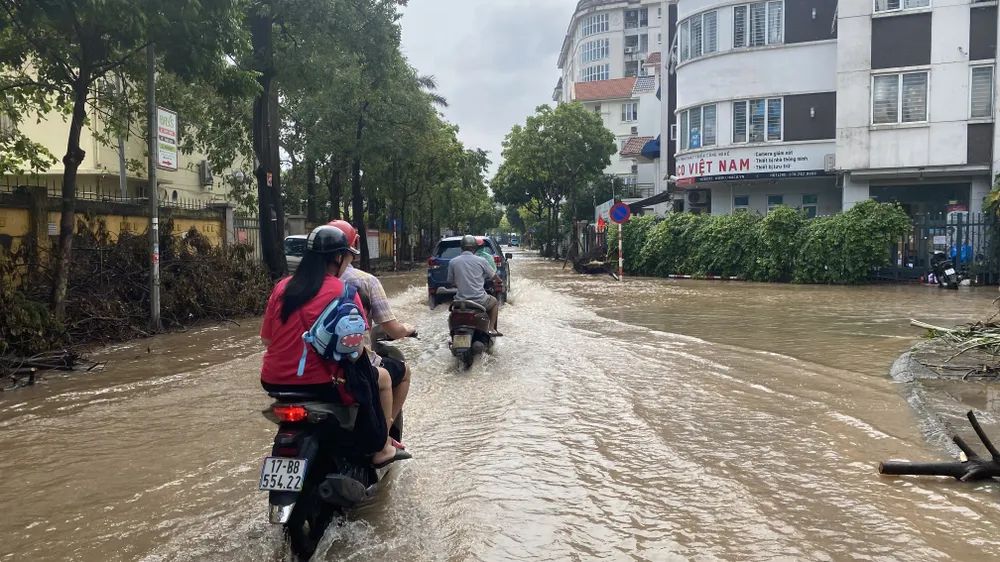 Nước ngập ở khu Kim Liên (Hà Nội) sáng 16-9