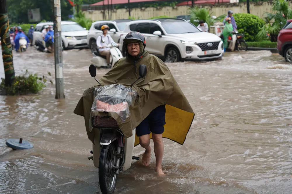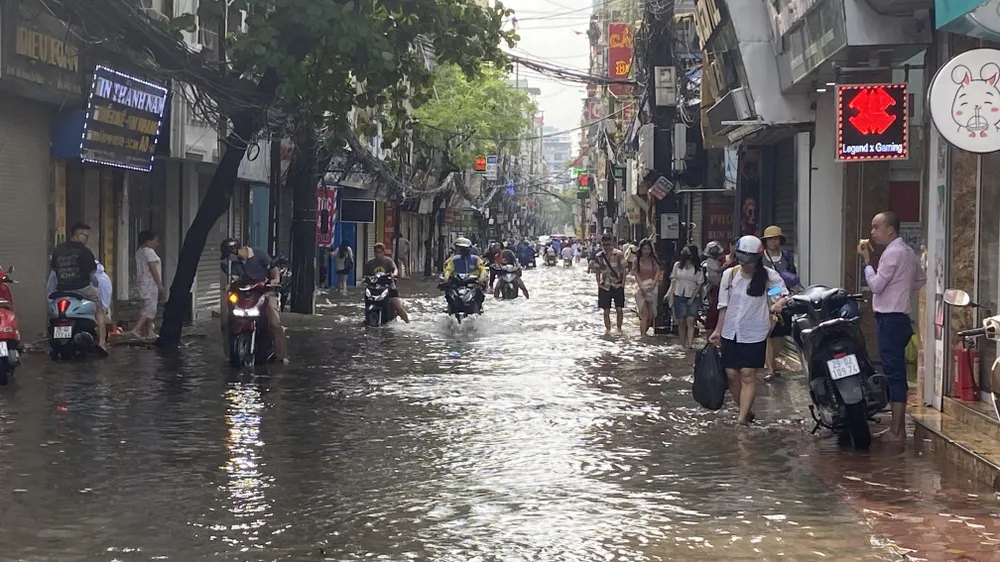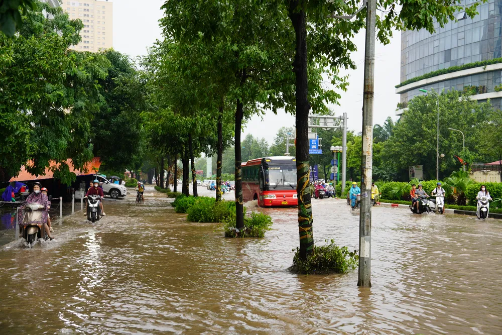 Một số hình ảnh nước ngập tại Hà Nội sáng nay: