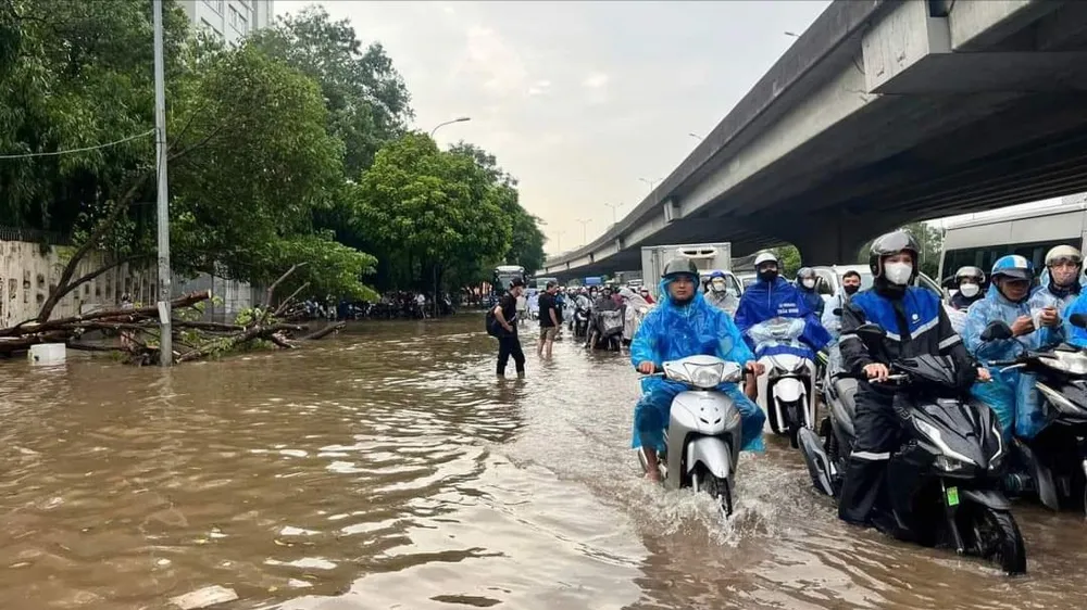 Hà Nội bị ngập nặng sáng nay khiến nhiều tuyến đường bị ùn tắc tắc vào giờ đi làm