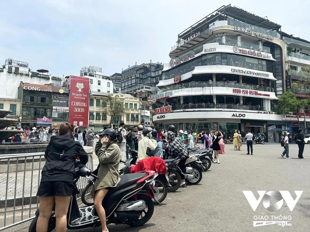 Xen lẫn tiếng cười nói là âm thanh còi xe inh ỏi, lực lượng chức năng liên tục tuần tra, nhắc nhở người dân không dừng đỗ xe dưới lòng đường làm cản trở giao thông… Thế nhưng chỉ vài phút, sau khi lực lượng chức năng rời đi, tình trạng lại này lại tái diễn, khiến khung cảnh tại quảng trường Đông Kinh Nghĩa Thục, phía trước tóa nhà Hàm Cá Mập trở nên lộn xộn, nhếch nhác.