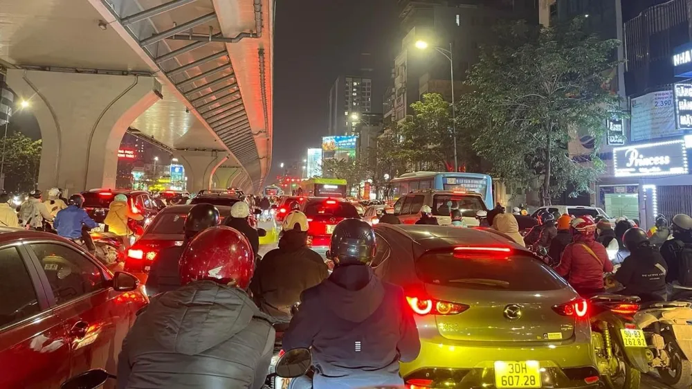 Theo khảo sát của PV Báo SGGP chiều 31-1, hàng loạt tuyến đường ở Hà Nội bị ùn tắc, trong đó ùn ứ chủ yếu là do xe cộ, mật độ phương tiện quá đông, có nhiều giao lộ, điểm chờ đèn xanh đèn đỏ.