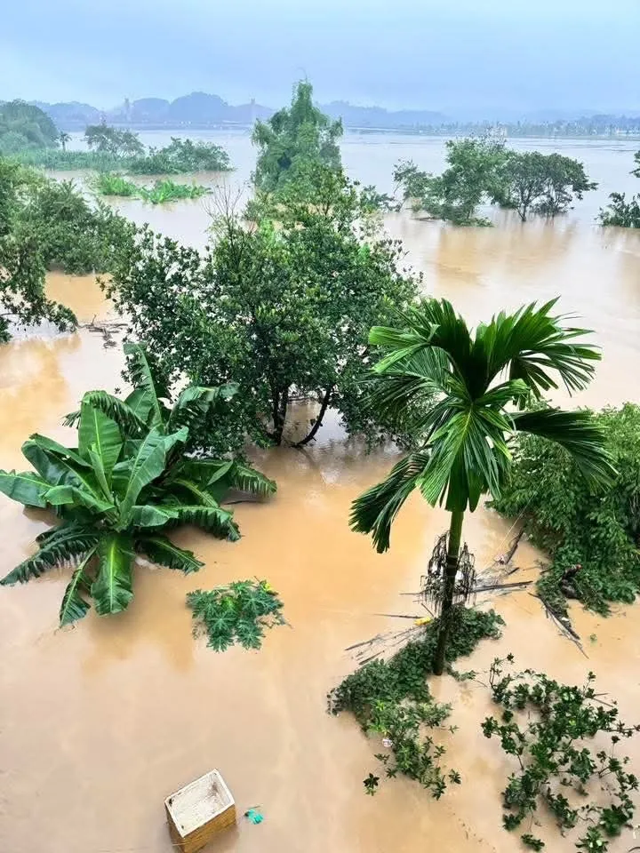 Nhiều khu phố ven sông Bằng Giang ở tỉnh Cao Bằng đang chìm trong nước lũ