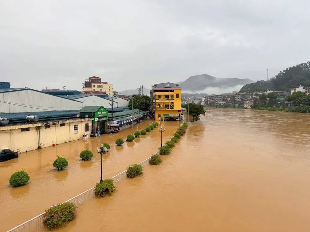 Nước lũ sông Thao ngập tràn những khu ven sông ở phường Yên Bái (tỉnh Lào Cai) ngày 30-9