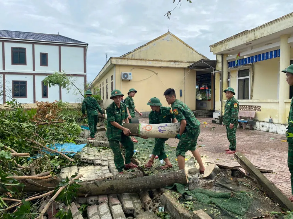 Lực lượng vũ trang tỉnh Hà Tĩnh hỗ trợ trường học khắc phục hậu quả sau bão số 5