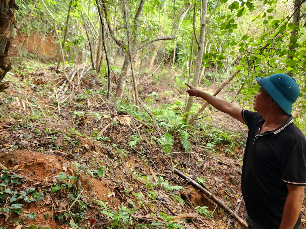 Ông Phạm Văn Tập, Trưởng thôn Thượng Tiến lo lắng những đường nứt ngày càng lan rộng trên núi Rú Dầu