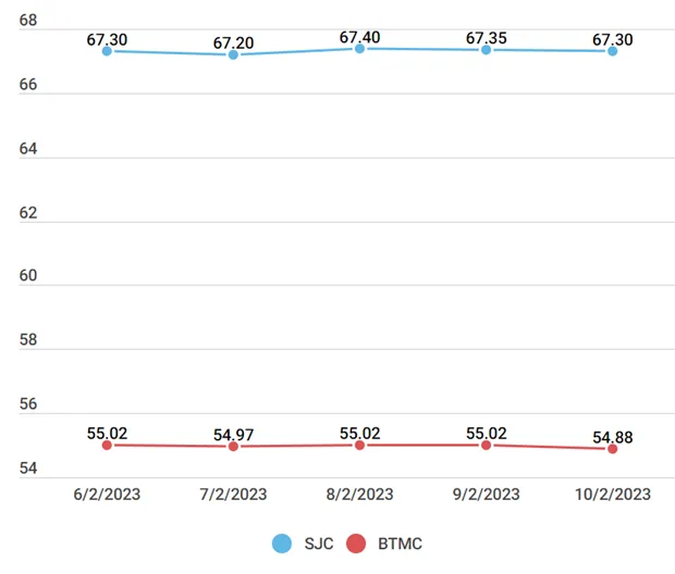 Tương tự, Công ty vàng bạc đá quý Sài Gòn và Công ty Phú Quý thông báo giá mua vào là 66,50 triệu đồng/lượng và bán ra là 67,30 triệu đồng/lượng, giảm 50.000 đồng.