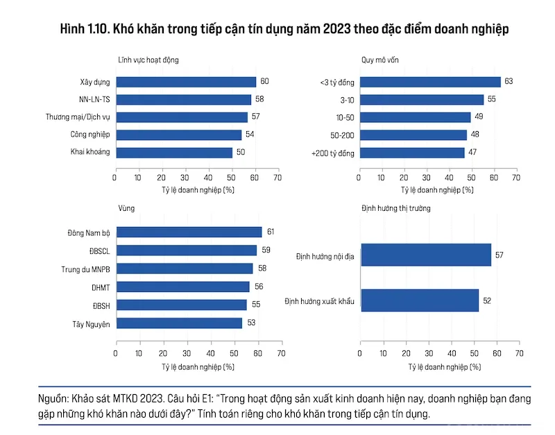 “57,1% doanh nghiệp phản ánh khó khăn lớn nhất mà các doanh nghiệp gặp phải là tiếp cận tín dụng. Xét theo chuỗi thời gian, đây cũng là con số cao nhất từ trước đến nay trong khảo sát doanh nghiệp thường niên của VCCI”, ông Đậu Anh Tuấn cho biết.