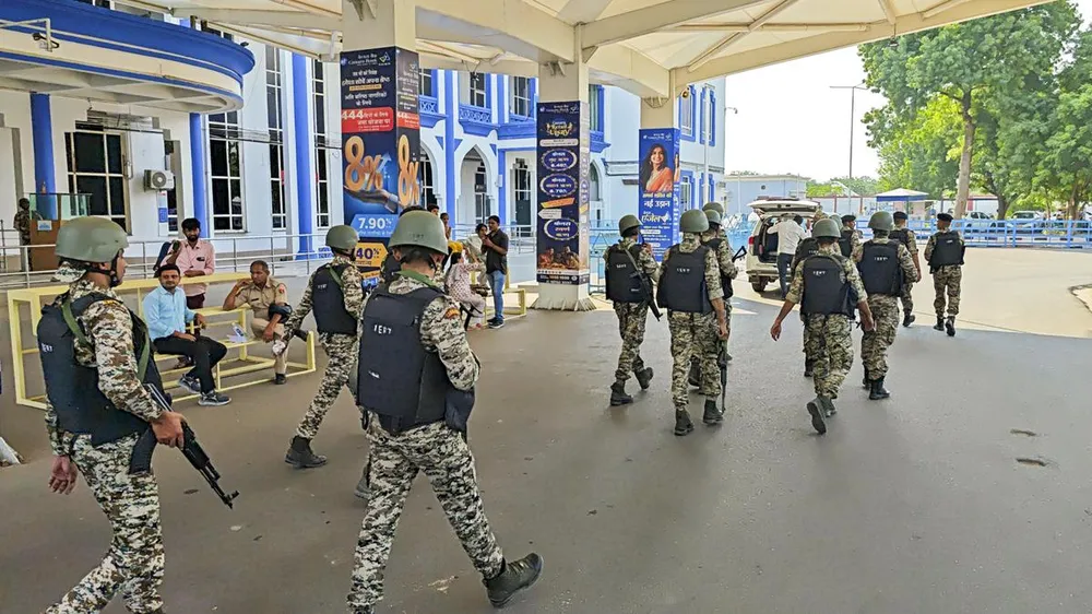 Lực lượng an ninh đến hiện trường máy bay bị đe doạ đánh bom tại Jodhpur, Ấn Độ. Ảnh: PTI