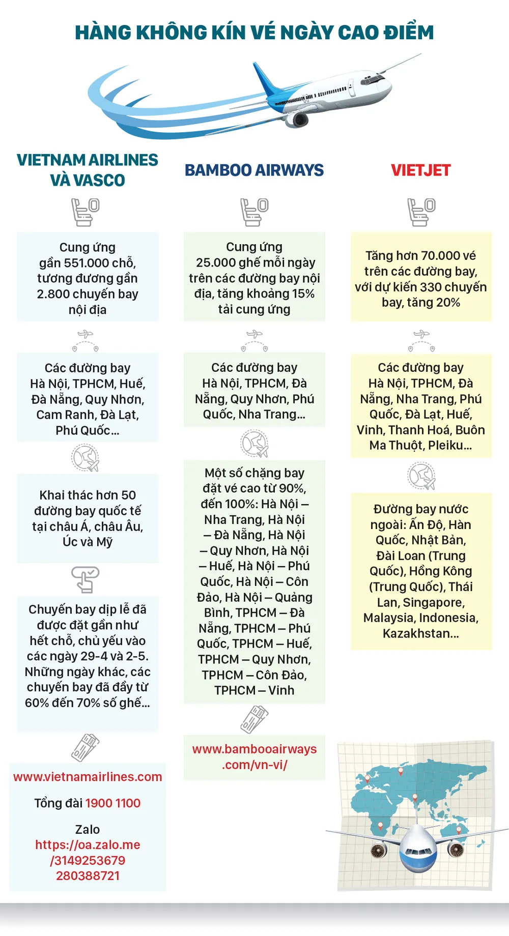 Hàng không, bến xe, đường sắt tăng chuyến phục vụ dịp lễ 30-4 và 1-5