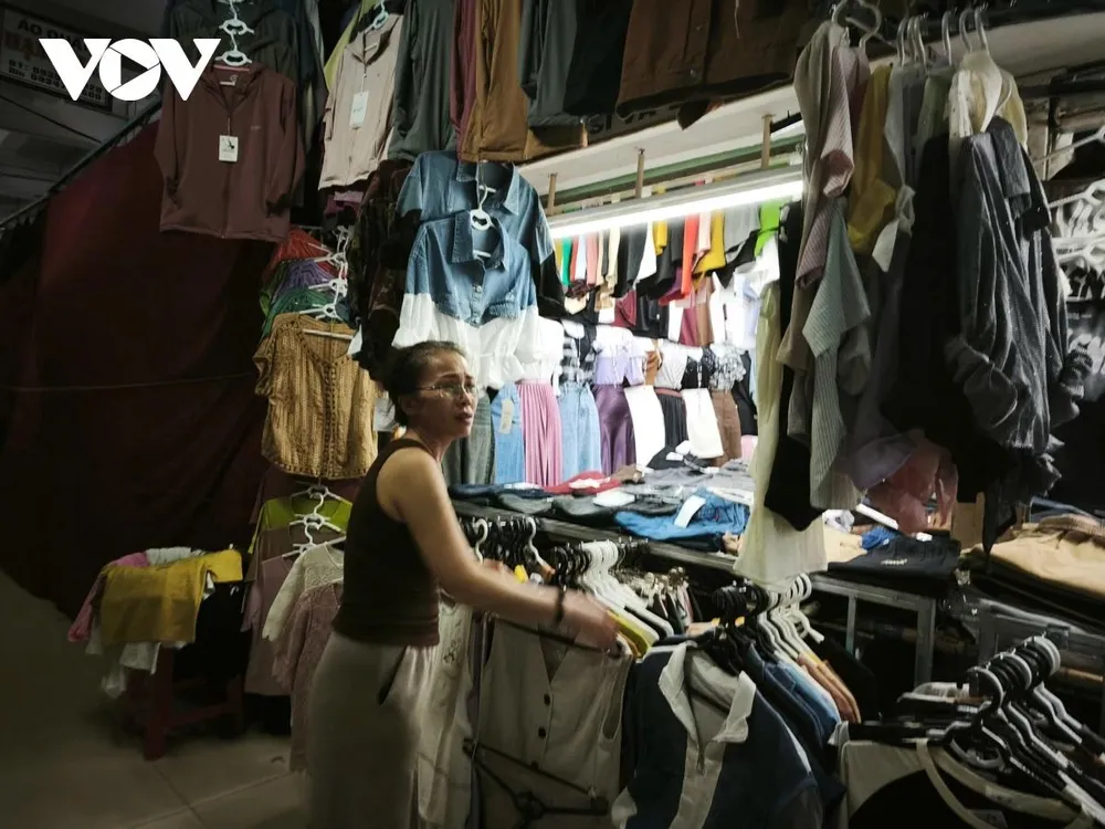 “Tôi vừa bán vừa ngồi vừa run, rất là lo lắng, hôm qua nghe rao trên loa là 2 ngày nữa Ban quản lý người ta về làm việc nên tiểu thương họ sợ, bởi vì bán ở đây thì ai cũng hợp pháp hết, có giấy phép kinh doanh, đóng thuế mặt bằng, quan trọng là cái hóa đơn đỏ. Hơn nữa hàng này cũng có hàng Quảng Châu, nghe đồn là hàng Quảng Châu Ban quản lý sẽ hốt thì tiểu thương phải sợ thôi, mặt hàng này đa phần là hàng Quảng Châu hết, tem mác không chính ngạch.”