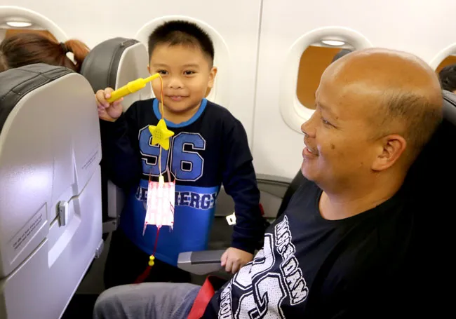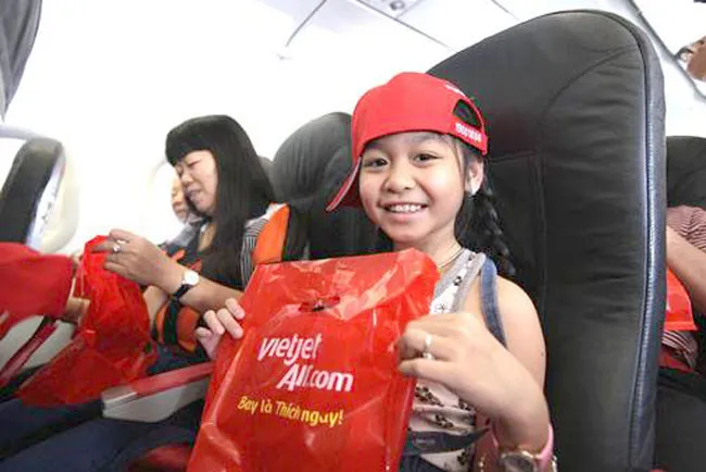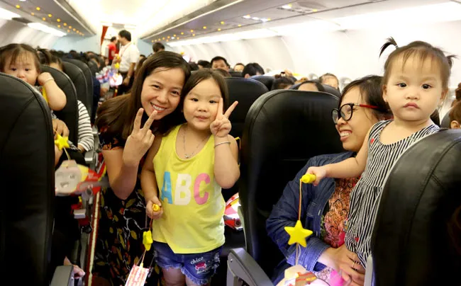 Mỗi dịp Trung thu, hành khách lại được thấy những nụ cười tươi sáng của các bé trên những chuyến bay Vietjet.