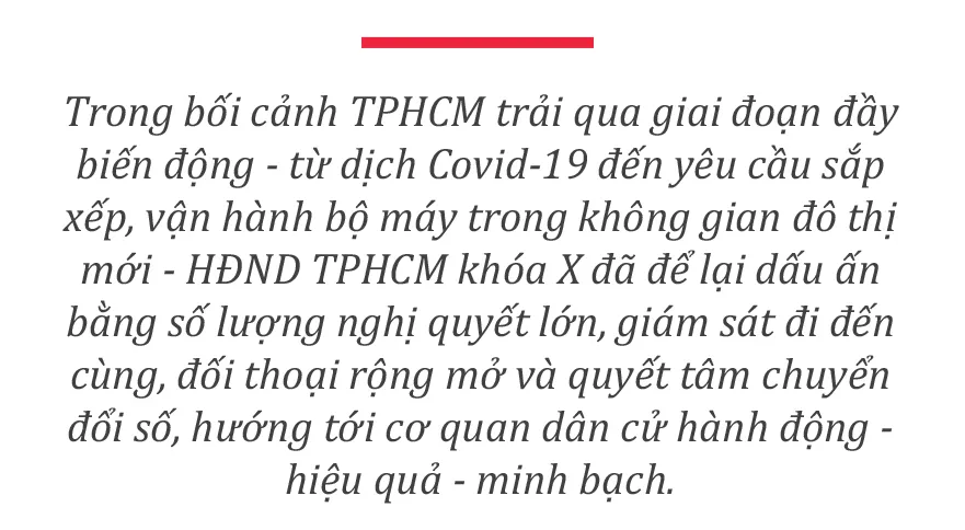 Nhân dịp Hội nghị tổng kết hoạt động HĐND TPHCM khóa X, nhiệm kỳ 2021-2026 diễn ra vào ngày 27-12, Báo SGGP xin giới thiệu một số kết quả nổi bật của HĐND TPHCM trong nhiệm kỳ 2021-2026: