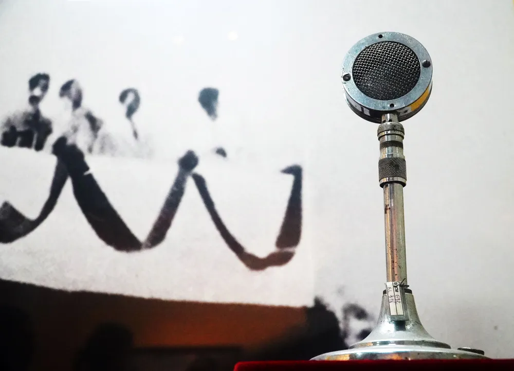 Chiếc micro than chì, mạ kền trắng sử dụng trong lễ mít tinh tại Quảng trường Ba Đình ngày 2-9-1945