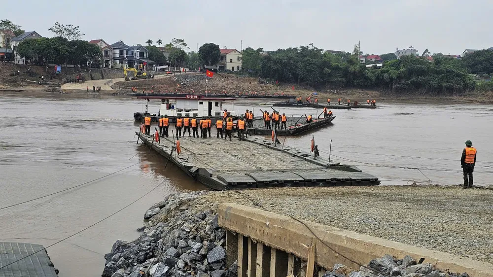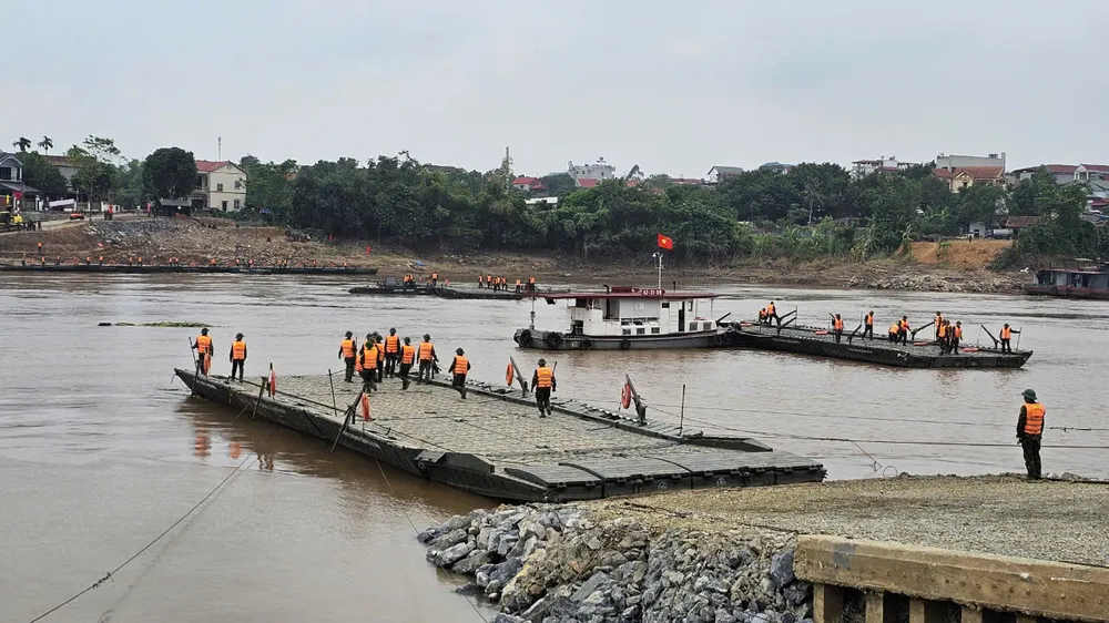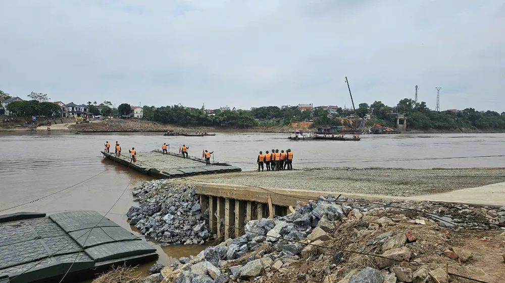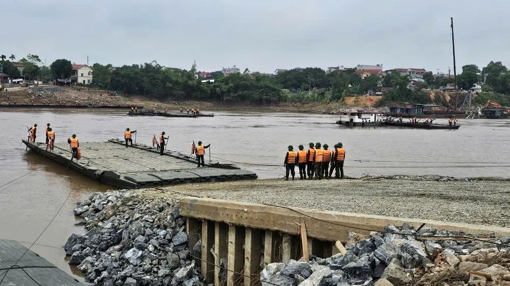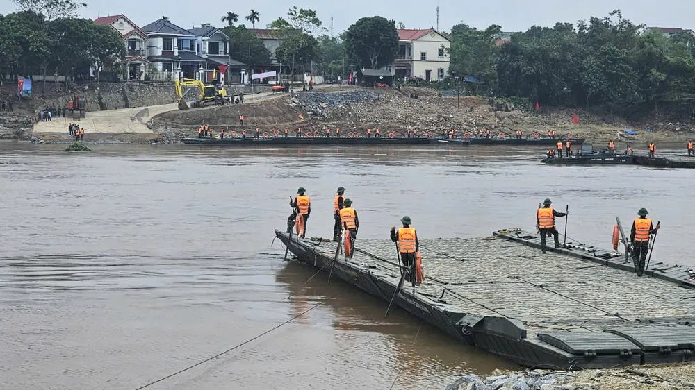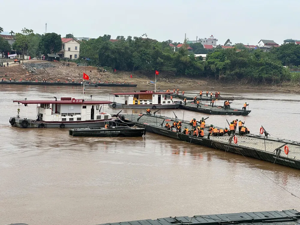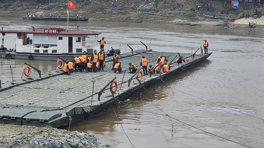 >>>Một số hình ảnh bộ đội công binh lắp cầu phao sáng 29-9: