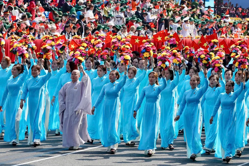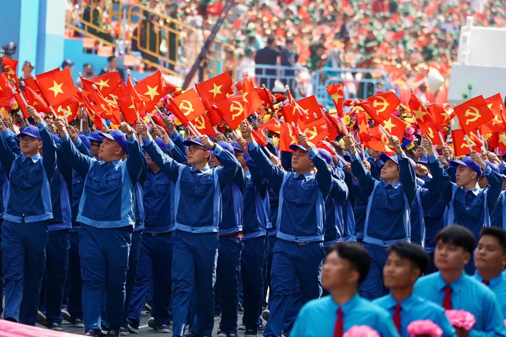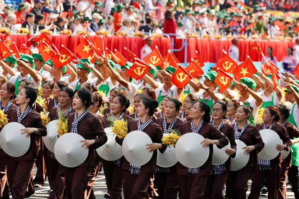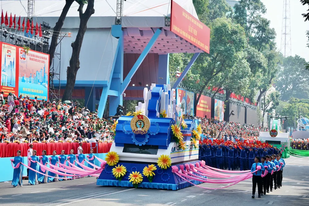 Tại Lễ kỷ niệm, các khối nghi trượng và đội hình diễu binh, diễu hành đã tiến vào Lễ đài, đi đầu đội hình là Quốc huy nước Cộng hòa xã hội chủ nghĩa Việt Nam.