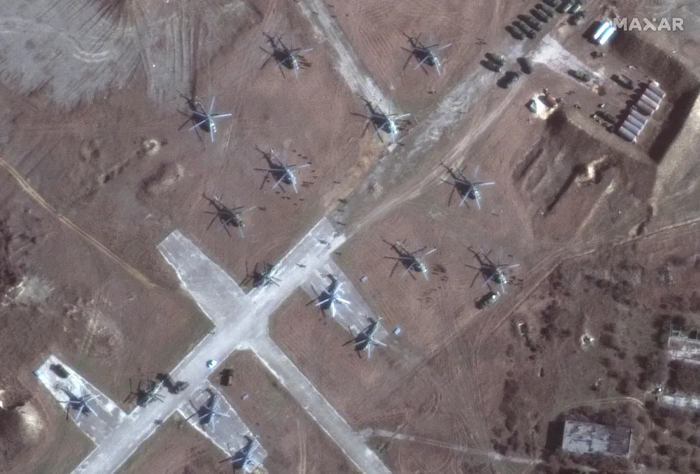 “Hoạt động mới đáng kể bao gồm sự xuất hiện của một số cuộc triển khai lớn của quân đội và trực thăng tấn công, triển khai mới của máy bay tấn công mặt đất và máy bay chiến đấu-ném bom đến các địa điểm tiền tuyến, sự xuất phát của nhiều đơn vị lực lượng mặt đất khỏi các đơn vị đồn trú hiện có cùng với các đơn vị chiến đấu khác được nhìn thấy trong đoàn xe”, Maxar cho biết trong một tuyên bố.