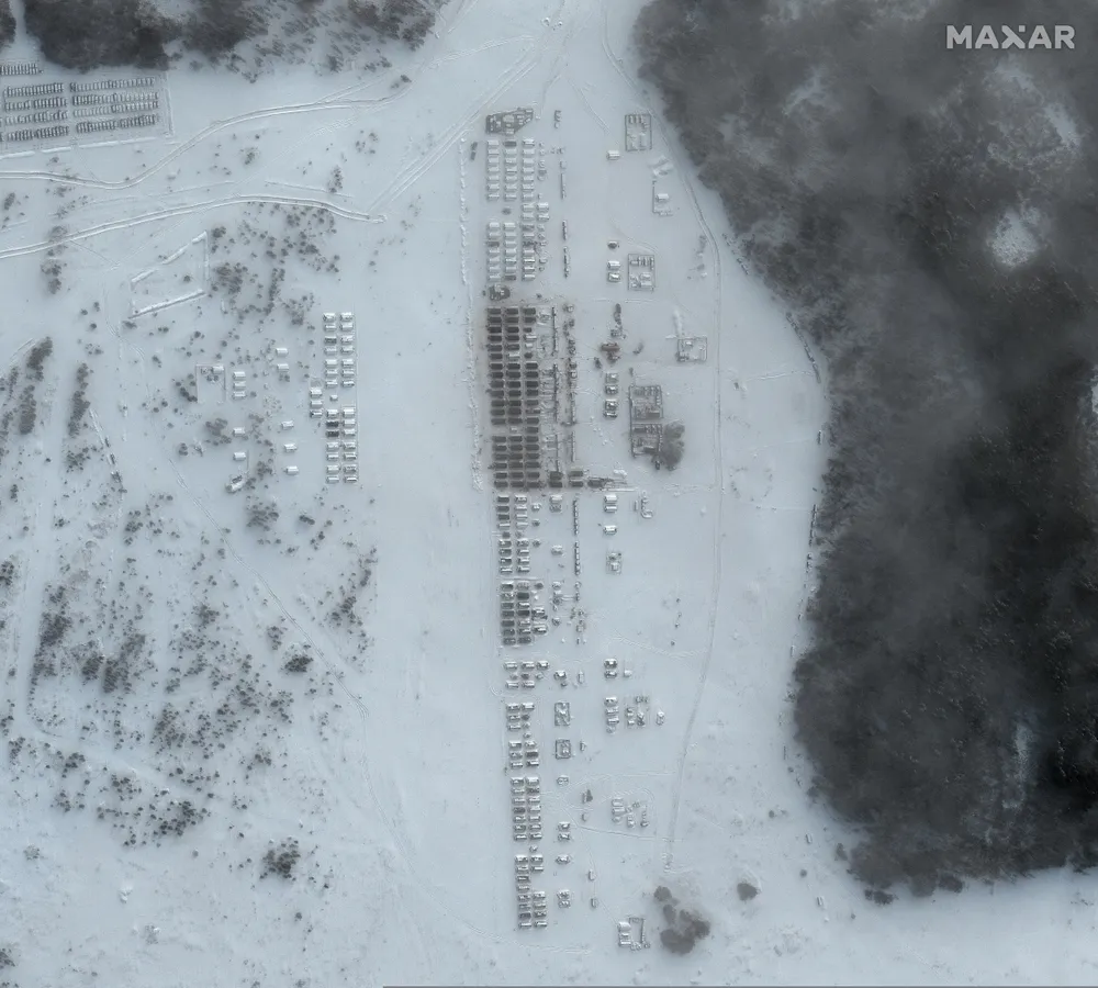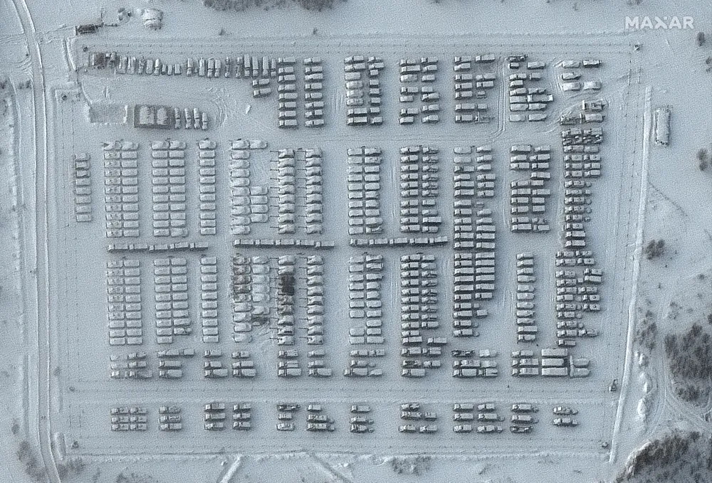 Các bức ảnh vệ tinh Maxar công bố cho công chúng vào tối thứ Hai 14/2 cho thấy thiết bị quân sự và quân nhân Nga đang di chuyển đến gần Ukraine.