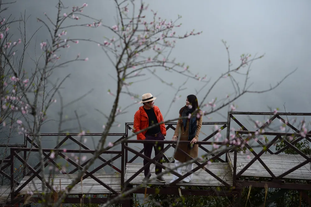 Từ thành phố Sa Pa mù sương, đến những cung đường Tây Bắc mảnh như sợi chỉ trên ngút ngần mây trời nơi nào cũng thấy hoa mơ, mận, đào khoe sắc. Mỗi khúc đường cong nép vào khe núi nhìn ra thung lũng thăm thẳm, mỗi phiên chợ vùng cao đều trở thành nơi bày cành đào, mận khoe sắc cho khách phương xa lựa chọn. Như bao người khác, anh Đỗ Tuấn Anh (khách du lịch đến từ Hà Nội) theo thói quen vào rằm Tháng Chạp lại lên đường cùng chúng bạn đi Tây Bắc chọn đào chơi Tết. Năm nay, cung đường của anh Tuấn Anh lựa chọn là tuyến Sa Pa - đèo Ô Quy Hồ - đèo Khâu Phạ, quốc lộ 32 nhưng ưu tiên chọn đào Sa Pa vì đẹp và bền có thể chơi đến hết tháng Giêng âm lịch.