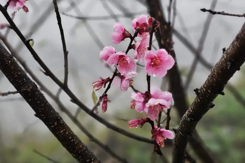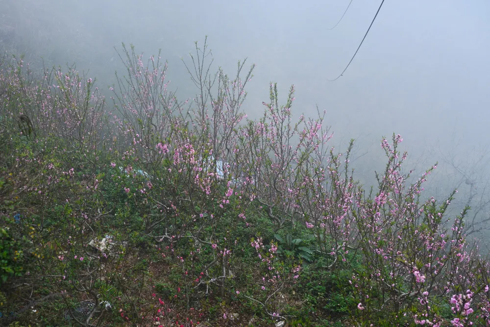 Sắc xuân bừng nở trong mù sương